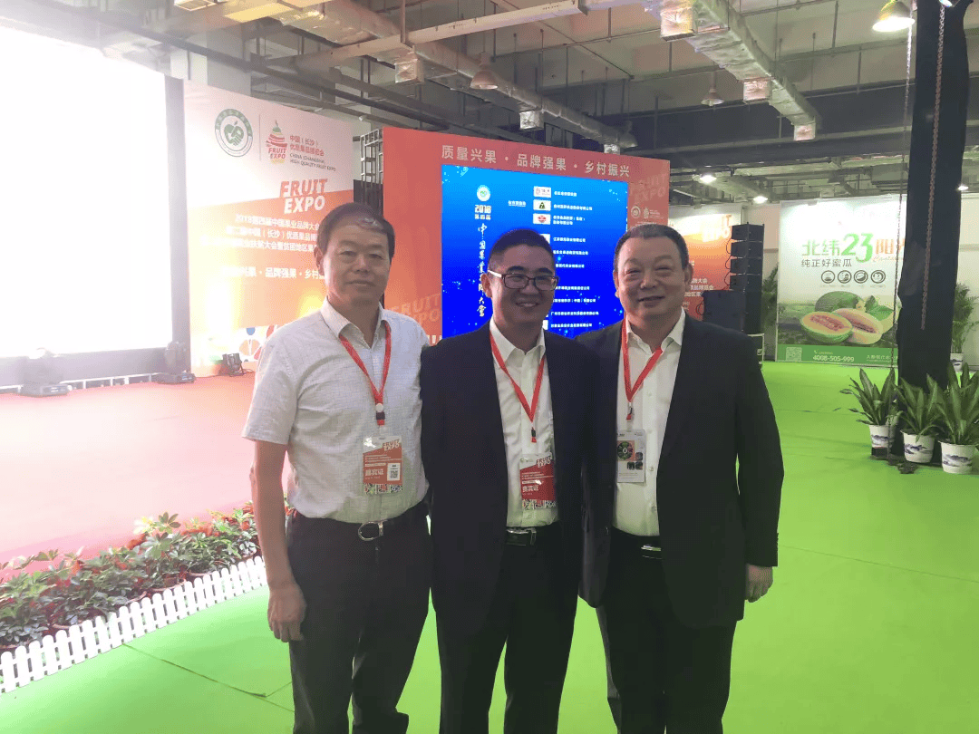 綠(lǜ)葉果業(yè)集團董事(shì)長(cháng)唐琪(左)、中國(guó)果品協會(huì)魯芳校(xiào)(中)、綠(lǜ)葉果業(yè)集團總經理(lǐ)唐≈紅(hóng)(右)