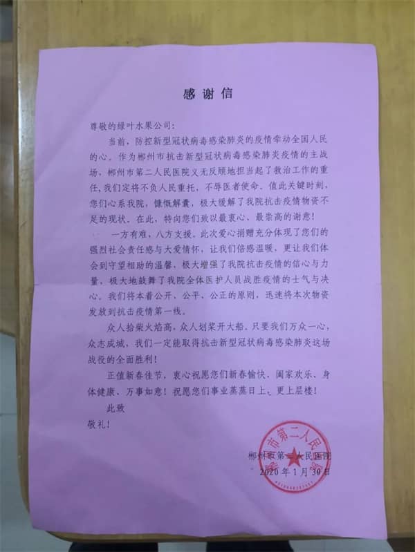 1月(yuè)30日(rì)-2月(yuè)1日(rì),作(zuò)為(wèi)一(yī)名基層人(rén)大(dà) 代表、綠(lǜ)葉水(shuǐ)果總經理(lǐ)唐紅(hóng)帶領綠(lǜ)葉員(yuán)工(gōng),前往長(cháng)沙、嶽陽、郴州等地(dì)十一(yī)家(jiā)醫(yī)院看(★kàn)望春節期間(jiān)仍堅守在一(yī)線的(de)醫(yī)務工(gōng)作(zuò)者們。