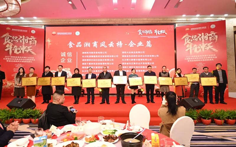 12月(yuè)27日(rì),湖(hú)南(nán)省食品流通(tōng)行(xíng)業(yè)協會(huì)食品安全專家(ji↕ā)委員(yuán)會(huì)成立大(dà)會(huì)暨食品湘商頒獎典禮在長(cháng)沙華天大(dà)酒店(diàn)隆重舉行(xíng)。湖(hú)南(nán)省食安辦副主任、湖(♣hú)南(nán)省市(shì)場(chǎng)監管局副局長(cháng)陳躍文(wén)出席并講話(huà),湖(hú£)南(nán)省商務廳副廳長(cháng)周越等相(xiàng)關部門(mén)領導及500多(duō)位食品>界企業(yè)家(jiā)、媒體(tǐ)記者一(yī)起了(le)見(jiàn)證了(le)這(zhè)一(yī)盛大(dà)慶典。