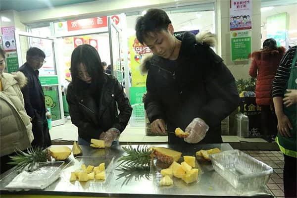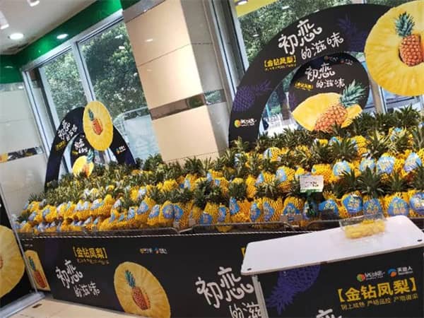 現(xiàn)場(chǎng)擺滿了(le)鳳梨,幾乎占了(le)門(mén)店(diàn)陳列的(de)一(yī)半