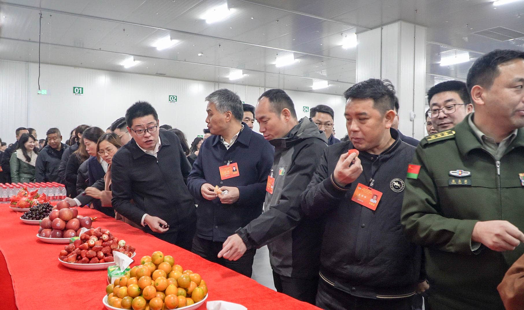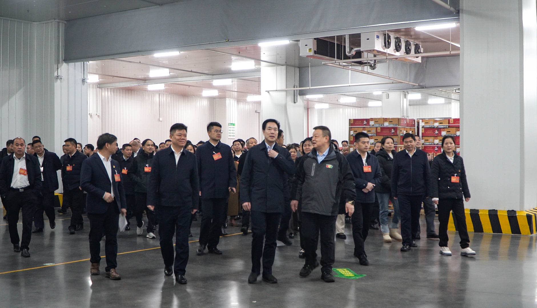 1月(yuè)15日(rì),甯鄉(xiāng)市(shì)委書(shū)記張作(zuò)林(lín),甯鄉(xiāng)經開(kāi)區(qū)黨工(gōng)委副書(shū)記、管委會(huì)主任張毅,市(shì)委副書(shū)記、市(shì)長(cháng)黃(huáng)滔等一(yī)行(xíng)共8₽00多(duō)人(rén)考察團莅臨綠(lǜ)葉水(shuǐ)果智能(néng)物(wù)流園參觀考察,綠(lǜ)葉水(αshuǐ)果總經理(lǐ)唐紅(hóng)陪同接待。