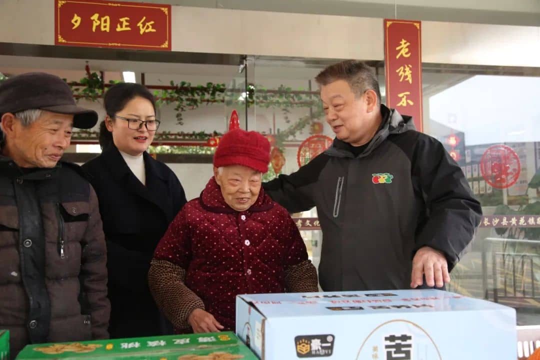 2024年(nián)2月(yuè)1日(rì),在長(cháng)沙縣黃(huáng)花(huā)鎮敬老(lǎo)院、甯鄉(xiāng)市(shì)夏铎鋪鎮區(qū)域中心↕敬老(lǎo)院,幾位老(lǎo)人(rén)看(kàn)著(zhe)綠(lǜ)葉水(shuǐ)果提前送來(lái)的(de)春節祝福,開(kāi)§心的(de)說(shuō)。
