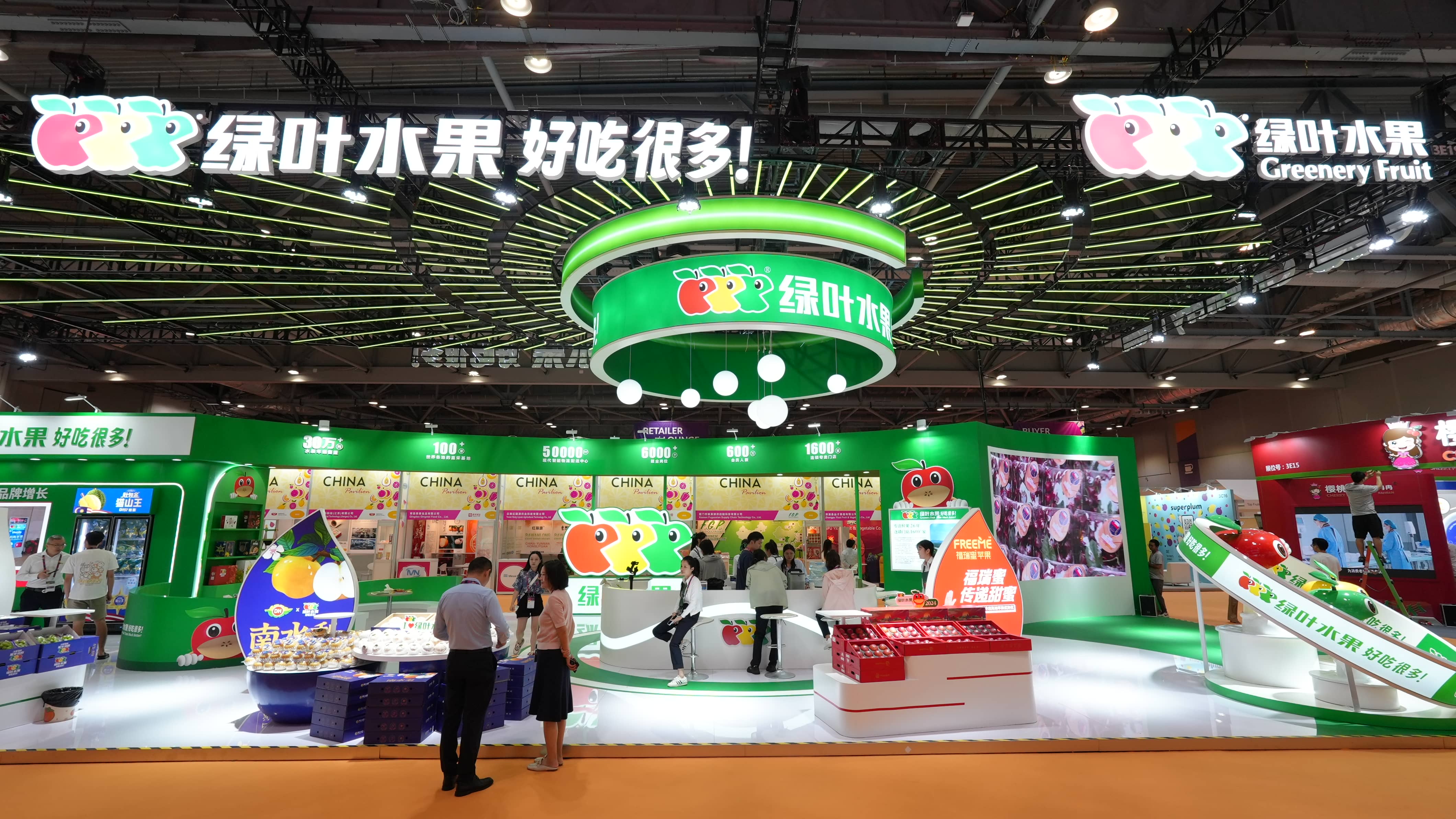 在本次展會(huì)中,綠(lǜ)葉水(shuǐ)果除了(le)展示明(míng)星産品,還(hái₽)将全新IP形象帶到(dào)了(le)展會(huì)現(xiàn)場(chǎng),可(kě)愛(ài)的(de)形象,萌趣的(de)造型,引發衆多(φduō)參展觀衆駐足打卡。
