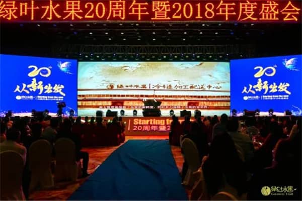 4月(yuè)10日(rì),綠(lǜ)葉水(shuǐ)果20周年(nián)暨2018年(nián)度盛典在長(chá$ng)沙聖爵菲斯大(dà)酒店(diàn)盛大(dà)召開(kāi),水(shuǐ)果行(xíng)業(yè)大(dà)佬、合作(zuò)客戶以及社會(huì)各界人(rén)士,和(γhé)千餘名綠(lǜ)葉人(rén)歡聚一(yī)堂,共同見(jiàn)證綠(lǜ)葉二十年(nián)來(lái)的(de)蝶變和(hé)輝煌。