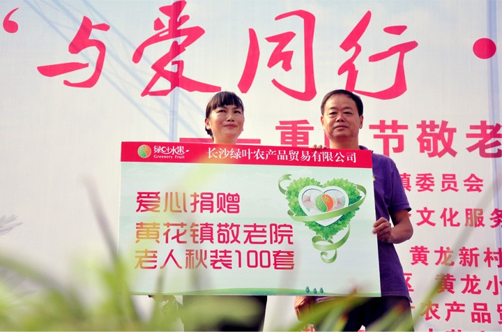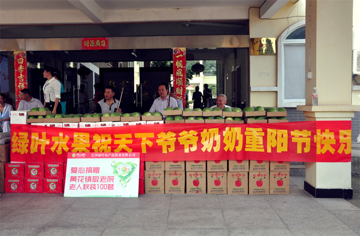 在綠(lǜ)葉水(shuǐ)果的(de)推動影(yǐng)響下(xià),在黃(huáng)花(huā)鎮敬老(lǎo$)院的(de)支持配合下(xià),綠(lǜ)葉水(shuǐ)果參加了(le)黃(huáng)花(huā)敬老(lǎo)院舉辦的(de)黃♣(huáng)花(huā)鎮第三屆“與愛(ài)同行(xíng)·情暖社會(huì)”的(de)重陽節敬老(lǎo)公益演出,此次活動吸引了(le)社會(huì)廣大(dà)愛(àiγ)心群體(tǐ)的(de)關注,包括了(le)黃(huáng)花(huā)鎮的(de)各級領導、長(cháng)沙綠(lǜ)葉農(nóng)産品貿易有(yǒu)限公司、湖(hú)南(nán)仁康泰大(dà)藥房(fáng)連鎖有(yǒu)限公司、長(cháng)沙新聞頻(•pín)道(dào)和(hé)長(cháng)沙縣電(diàn)視(shì)台。