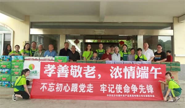 6月(yuè)6日(rì),端午佳節來(lái)臨之際,我司總經理(lǐ)唐紅(hóng)帶領綠(lǜ)葉水(shuǐ)果黨支部與人(rén)資中心一(yī)行(xíng)17人(rén),一(yī)起來(lái)到(dào)黃(huáng)花(huā)敬老(lǎo)院,與老(lǎo)人(rén)們歡聚一 (yī)堂,為(wèi)他(tā)們送去(qù)新鮮的(de)綠(lǜ)葉瓜果,也(yě)送去(qù)了(le)企業(±yè)深切關懷和(hé)節日(rì)的(de)祝福。