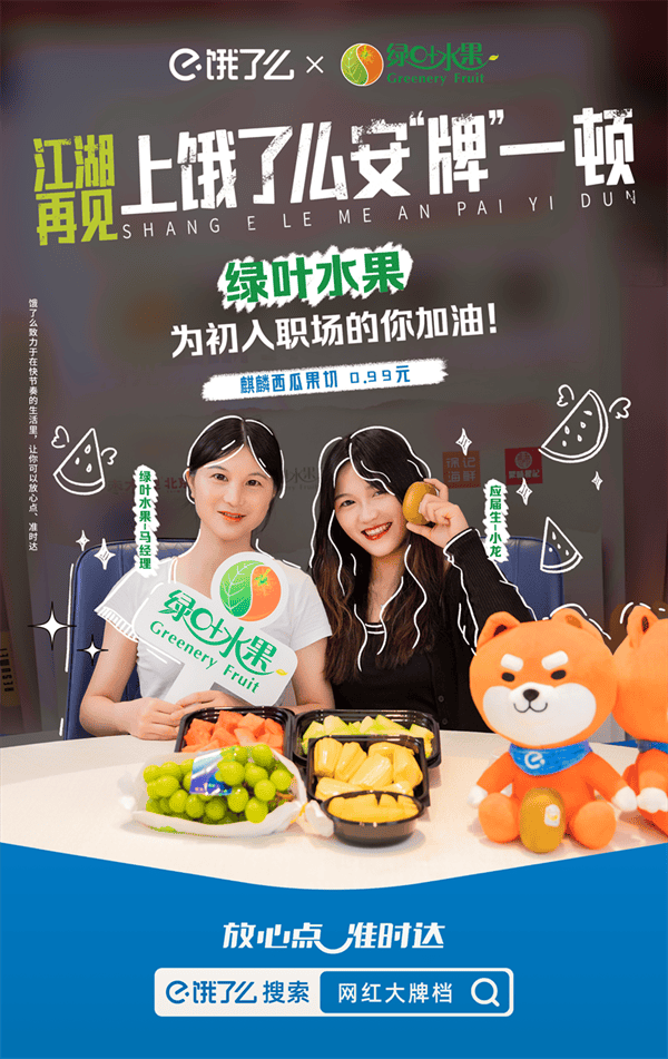 綠(lǜ)葉水(shuǐ)果聯手餓了(le)麽給畢業(yè)生(shēng)安“牌”一(yī)頓