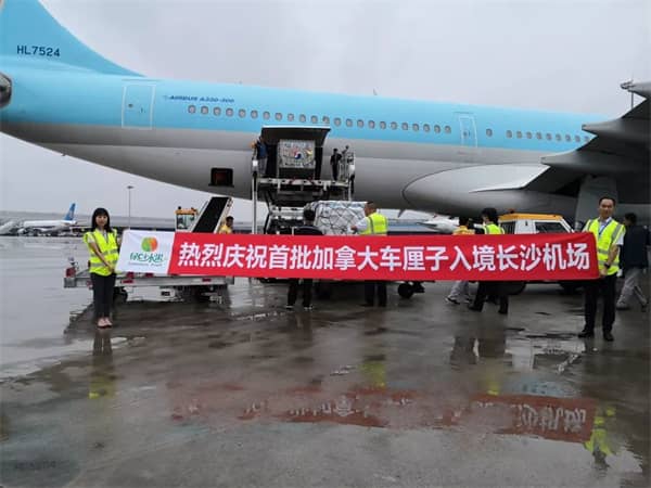 綠(lǜ)葉水(shuǐ)果的(de)消費(fèi)者有(yǒu)口福了(le)!加拿(ná)大(dà)車(chē)厘子(zǐ)首∏次直達長(cháng)沙機(jī)場(chǎng)