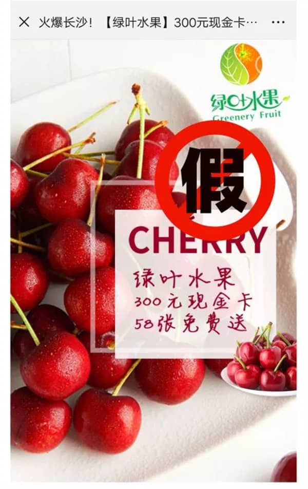近(jìn)日(rì)我司接到(dào)許多(duō)消費(fèi)者反饋,在朋(péng)友(yǒu)圈和(hé)微(wēi)信群裡(l ǐ)發現(xiàn)了(le)“綠(lǜ)葉水(shuǐ)果贈送300元現(xiàn)金(jīn)卡”的(de)活動鏈接,詢問(wè≥n)我司該活動的(de)真實性,在此,我司向大(dà)家(jiā)鄭重聲明(míng):我司未開(kāi)展任何“綠(lǜ)葉水(shuǐ)果贈送300元現(xiàn)金(jīn)卡”的(de)活 動,所謂的(de)“綠(lǜ)葉水(shuǐ)果贈送300元現(xiàn)金(jīn)卡”活動與綠(lǜ)葉水(shuǐ)果無關,系不(bù)法分(fēn)子(zǐ)的(de)商α業(yè)欺詐行(xíng)為(wèi)!請(qǐng)大(dà)家(jiā)堅決不(bù)要(yào)相(xiàng)信。目前,這(zhè)個(g↑è)活動的(de)鏈接還(hái)被許多(duō)不(bù)知(zhī)情的(de)網友(yǒu)們轉發,為(wèi¥)了(le)避免更多(duō)消費(fèi)者上(shàng)當受騙及個(gè)人(rén)信息洩露,請(qǐng₽)大(dà)家(jiā)互相(xiàng)轉告。